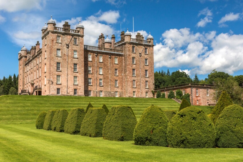 El Castillo de Drumlanrig es uno de los ejemplos más impresionantes de arquitectura renacentista escocesa. Apodado el «Palacio Rosa» por el color de su arenisca, este castillo del siglo XVII es la sede histórica de los Duques de Buccleuch. Los interiores suntuosos albergan una de las colecciones de arte privadas más importantes de Escocia, incluyendo obras de Rembrandt y Leonardo da Vinci. Los jardines formales y el parque de 40 hectáreas ofrecen hermosos paseos, rutas de bicicleta de montaña y un área de juegos para niños. El castillo organiza regularmente eventos especiales y visitas guiadas de las salas históricas.