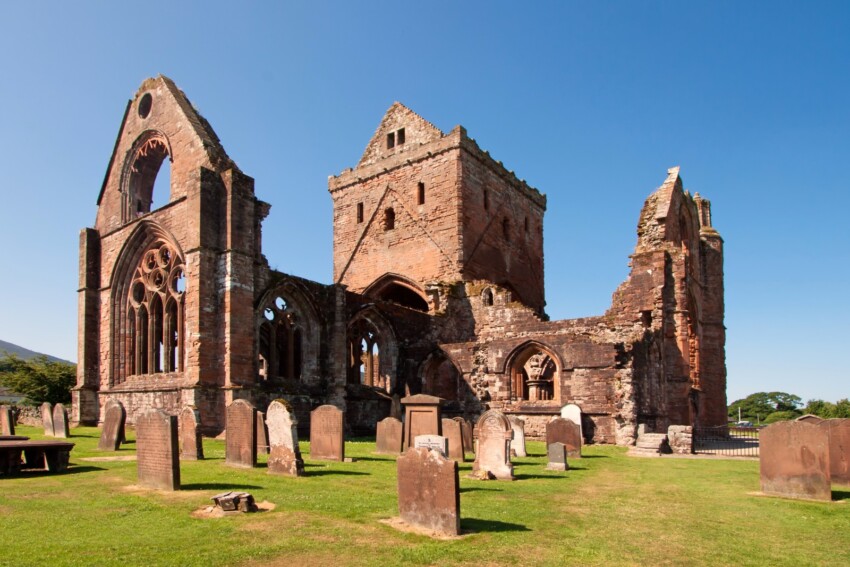 La colosal Sweetheart Abbey yace en posición romántica cerca del pueblo de New Abbey y debe su extraño nombre a su fundadora, Dervogilla de Balliol, Dama de Galloway, que en los últimos años de su vida llevaba siempre consigo el corazón embalsamado de su marido: incluso a su muerte quiso ser sepultada en este monasterio junto con el cofre en el que guardaba el corazón.