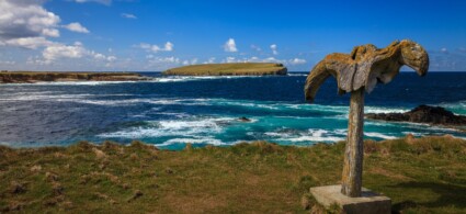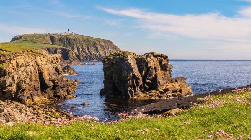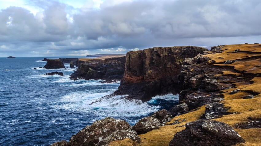 La South Mainland de las Shetland es una larga y estrecha península que se adentra en el mar: 40 km de paisajes salvajes y ondulados que se alternan con acantilados impresionantes y tierras de cultivo.