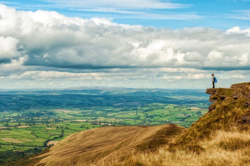 Explorando esta zona se pueden admirar diversos paisajes como páramos desolados, playas salvajes, bosques y también costas rocosas que regalan escenarios espectaculares especialmente al atardecer. En particular, se encuentran el Taff Trail, una ruta ciclista que atraviesa los Brecon Beacons partiendo desde Cardiff, y la Beacons Way, un sendero de casi 160 km. Además, el Parque Nacional Brecon Beacons incluye cuatro grandes sistemas de cuevas calcáreas que pueden explorarse a través de visitas guiadas.