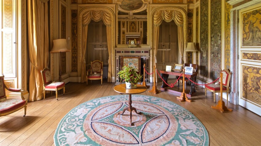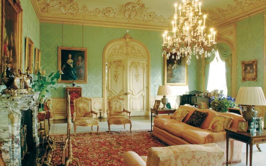 El salón de estilo rococó representa un rincón de refinamiento francés dentro del castillo inglés y uno de los ambientes más fotografiados de Downton Abbey. Las paredes están revestidas con suave seda verde francesa original, con damascos finamente trabajados que se remontan al siglo XVIII. Este ambiente más íntimo era utilizado por la familia para momentos de relajación y conversaciones privadas, lejos de la formalidad de las grandes salas de representación, exactamente como se muestra en la serie cuando las damas de la familia se retiran aquí para el té de la tarde o conversaciones reservadas.