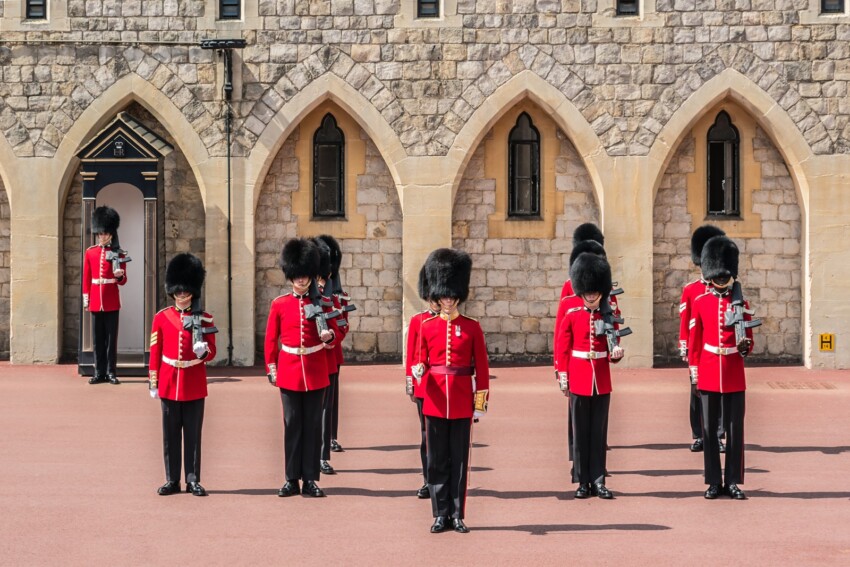 La visita al castillo ofrece también la oportunidad de presenciar el espectacular Cambio de Guardia, una ceremonia tradicional que se lleva a cabo en el patio inferior. Durante este ritual que dura aproximadamente 30 minutos, los visitantes pueden admirar las precisas evoluciones de la División del Hogar mientras una nueva guardia releva a la anterior, todo acompañado por la banda militar. El espectáculo, que generalmente tiene lugar a las 11:00, es una fascinante demostración de la precisión y la pompa militar británica.