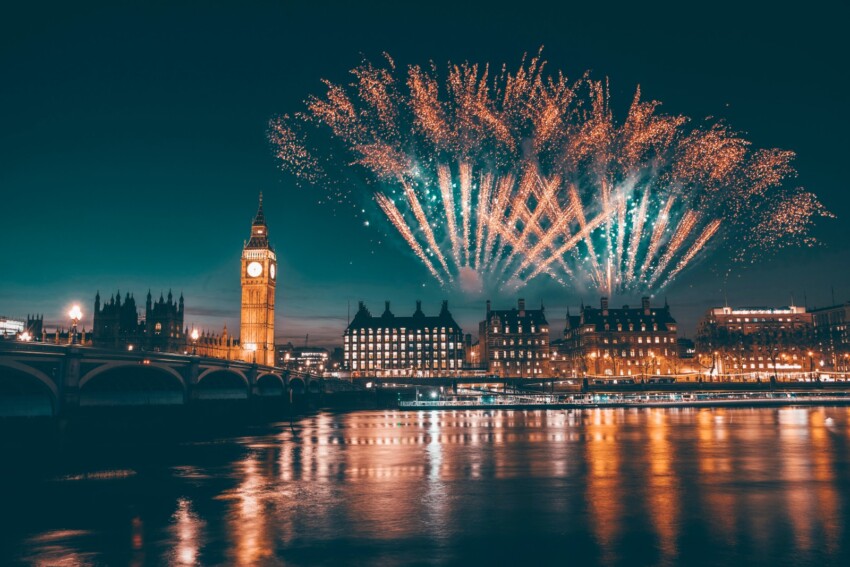 La noche del 31 de diciembre transforma Londres en un escenario al aire libre donde más de 12.000 fuegos artificiales explotan sincronizados con las campanadas de medianoche del Big Ben, mientras decenas de miles de personas se reúnen a lo largo de las orillas del Támesis para presenciar el espectáculo. Pero la Nochevieja en Londres es mucho más que esto: es la oportunidad de elegir entre cruceros panorámicos por el río, fiestas exclusivas en las azoteas más espectaculares, cenas de lujo con vistas impresionantes y clubs legendarios donde bailar hasta el amanecer.