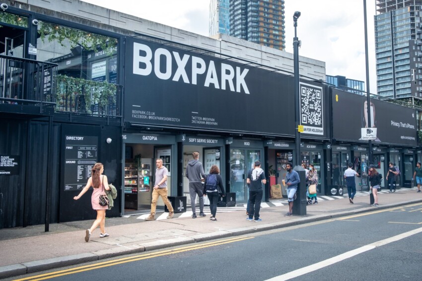 Inaugurado en 2011, Boxpark representa un experimento pionero en el concepto de centro comercial urbano. Construido completamente con 61 contenedores navales reciclados e apilados en dos niveles, este complejo de 5.500 metros cuadrados redefinió el retail londinense. Situado en Bethnal Green Road, cerca de la estación de metro de Shoreditch High Street, Boxpark alberga marcas emergentes, restaurantes, bares y espacios para eventos temporales.