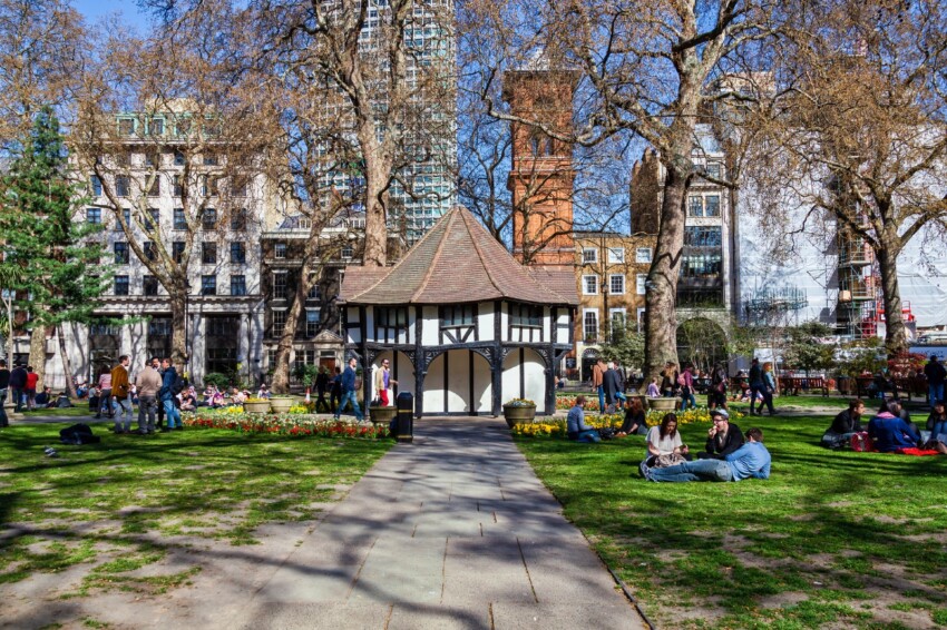 El parque alberga estatuas de personalidades históricas: una de Carlos II (una copia, el original de 1681 está ahora en el Museo de Londres) y monumentos conmemorativos. Los prados centrales están abiertos al público durante el verano, convirtiéndose en un lugar popular para picnics y descansos para los trabajadores de las oficinas circundantes.