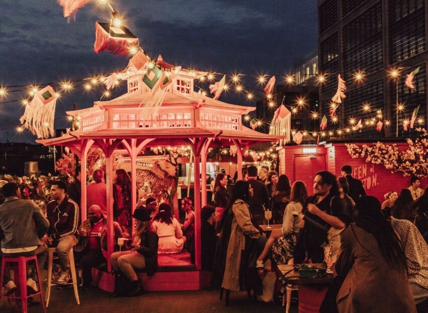 El Queen of Hoxton13 es uno de los símbolos de Shoreditch, un local de varios niveles con una increíble azotea que cambia de tema cada estación. Durante el verano la terraza se transforma en un espacio tropical con tumbonas y cócteles exóticos, mientras que en invierno se instalan estructuras calefaccionadas para continuar disfrutando de las vistas de la ciudad. El local alberga regularmente sesiones de DJ y fiestas temáticas que atraen a cientos de personas.