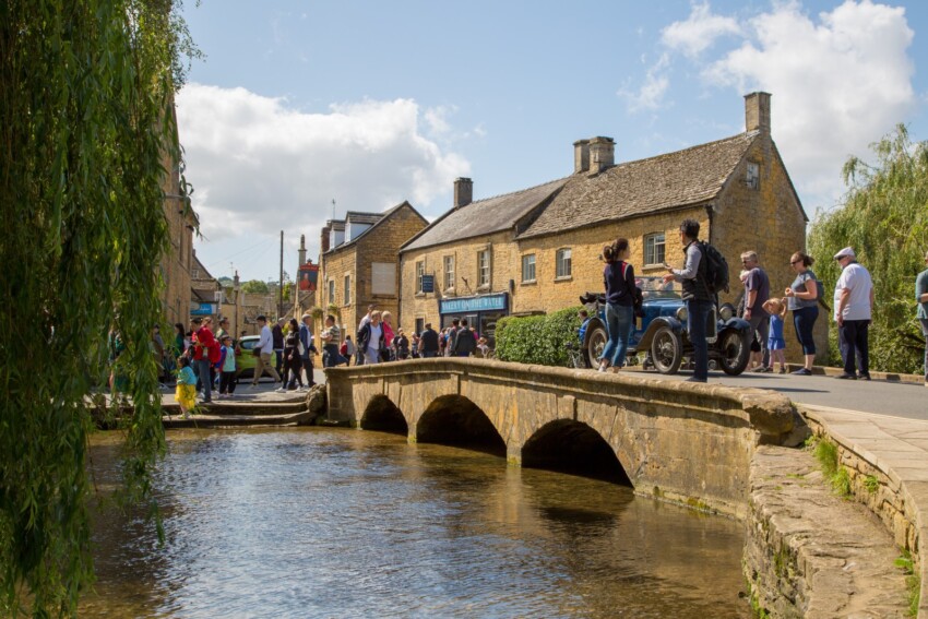 Bourton-on-the-Water, affectueusement surnommée la « Venise des Cotswolds », est l’un des villages les plus pittoresques et les plus visités de la région. La rivière Windrush, qui traverse le centre du village, est enjambée par cinq gracieux ponts bas en pierre, le plus ancien datant de 1654. Ces ponts, ainsi que les élégantes maisons en calcaire qui se reflètent dans les eaux cristallines de la rivière, créent une atmosphère unique qui attire des visiteurs du monde entier.